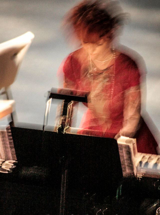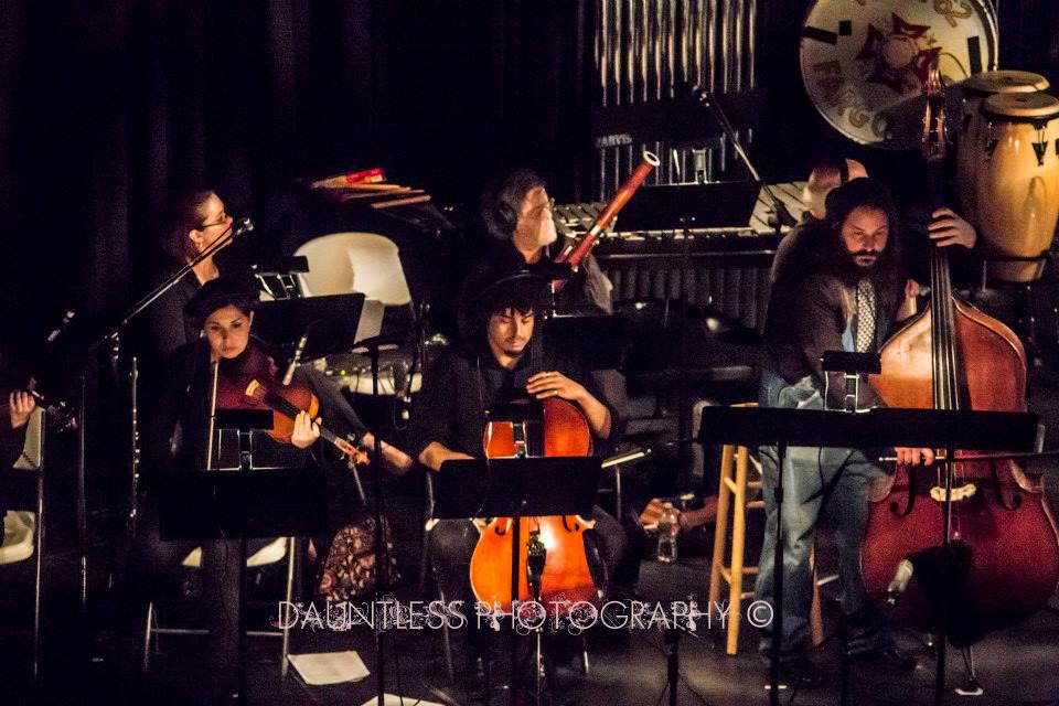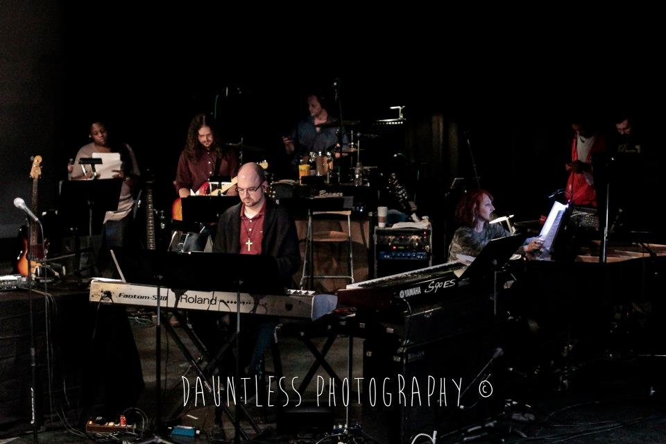 As the audience enjoys a thought-provoking and beautiful piece of cinematic history, the live soundtrack adds even greater emotional power to the experience. To achieve its broad spectrum of musical styles, Metropolis Elektro uses a rock band, a string quartet, a small choir, a rap artist, and a DJ. Additionally, the score calls for bassoon, flute, trumpet, two guitarists, and two pianists/keyboardists. The composers enjoy being part of the performance, Scott on acoustic and electric guitars and Amy on piano, Fender Rhodes, and keyboard.